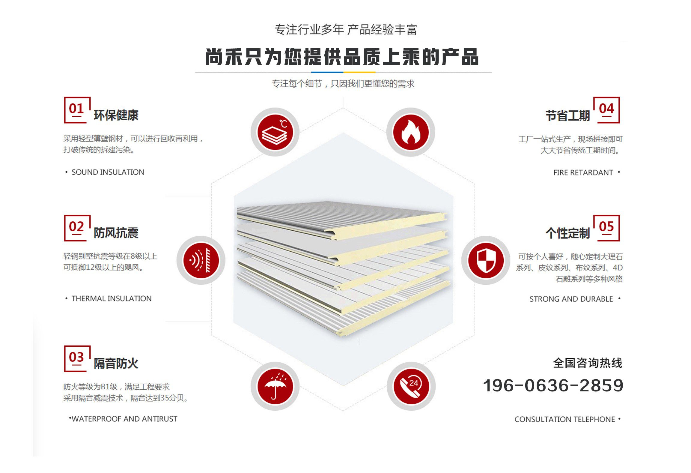 山東尚禾經(jīng)貿(mào)有限公司是集板材設計、研發(fā)、生產(chǎn)、施工、一體化的科技公司,并在同行業(yè)中率先通過了質(zhì)量、環(huán)境、安全管理體系認證。公司2011年投入資金2000余萬元引進世界先進的聚氨酯節(jié)能板連續(xù)生產(chǎn)線、意大利進口發(fā)泡系統(tǒng),采用六組份在線自動操作混合澆注技術,在線一次性完成社會配料中心或工廠的配比混合工藝,并可以根據(jù)溫度在線自動調(diào)整,從而生產(chǎn)處與眾不同的高強度、節(jié)能型、綠色環(huán)保的聚氨酯夾芯板。(其使用年限高于同行業(yè)其他品牌5-10年) 公司主要經(jīng)營范圍包括聚氨酯夾芯板,PU夾芯板,冷庫板,潔凈板,聚氨酯冷庫板,冷庫保溫板的設計、生產(chǎn)、銷售、技術指導、安裝及一體、以及進出口業(yè)務,是中部六省最大的綠色節(jié)能建材生產(chǎn)基地。聚氨酯夾芯板年產(chǎn)200萬平方米、PU夾芯板、冷庫保溫板500萬平方米、鏈整產(chǎn)業(yè)綜合實力,開創(chuàng)了六省至中西部創(chuàng)新型中小名企總部基地,并將著力推進中國中西部地區(qū)集成房屋住宅產(chǎn)業(yè)化發(fā)展進程?! 】萍紕?chuàng)新、節(jié)能典范。千萬間始終秉承“誠信、合作”的企業(yè)文化精髓,長期致力于鋼板材結構節(jié)能建筑產(chǎn)業(yè),愿與社會各界攜手合作,共鑄綠色、環(huán)保美好未來。 產(chǎn)品具有良好的絕熱、阻燃、隔音、環(huán)保、耐久性能,可廣泛應用于工業(yè)、商用建筑內(nèi)外墻、以及民用建筑外墻保溫、空調(diào)通風系統(tǒng)、專用防火保溫門等領域。 我們始終秉承...